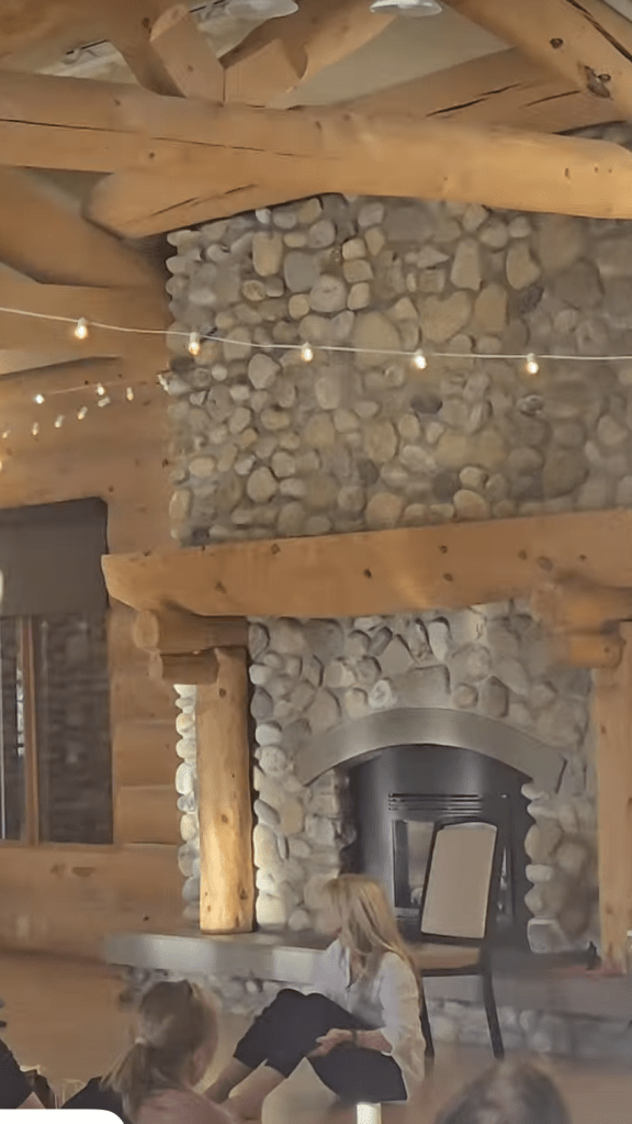 Wood beams, soaring stone fireplace and inspiring views.